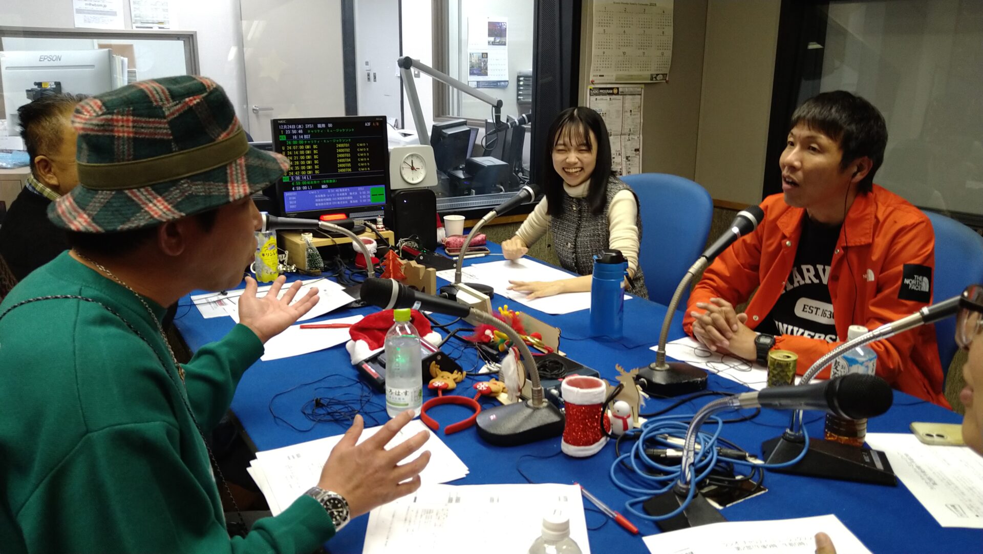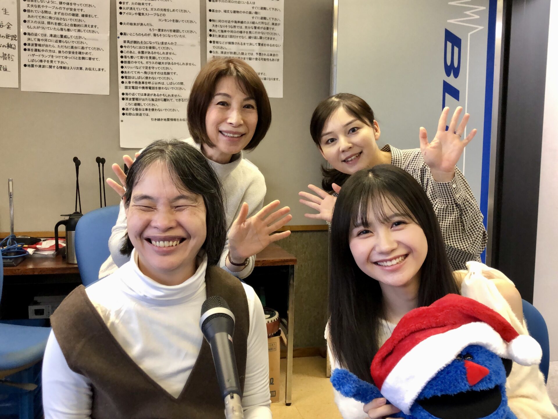 ※写真は25日(木)朝の部にご出演いただいた、高校2年生の女優・堀川梨心さん、 全盲のパーソナリティ・亀山直美さん。そして笠野衣美さんと総合進行を務めた中川 智美アナ