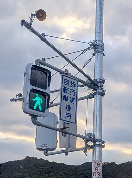 17日に稼働した音の出る信号機(那智勝浦町・勝浦臨海交差点)