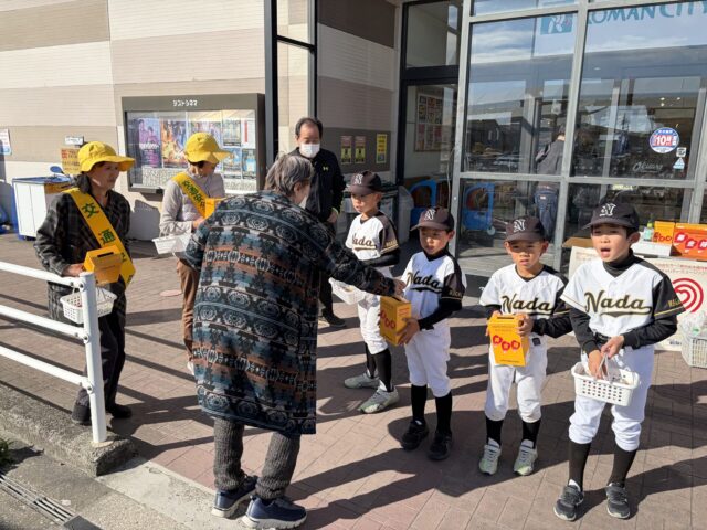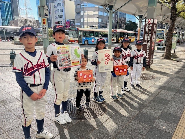 和歌山市 山口少年野球クラブのみなさんも募金活動頑張っています。募金箱を持ち、元気な球児の呼びかけの声がまちに響いています。