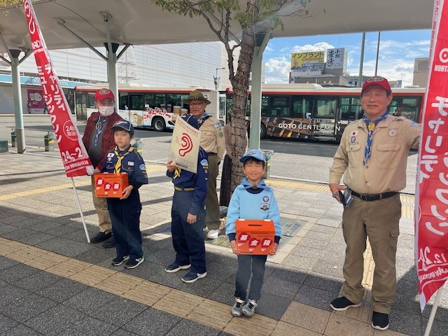 ボーイスカウト和歌山第18団のみなさんたちと正午から募金活動頑張っています。